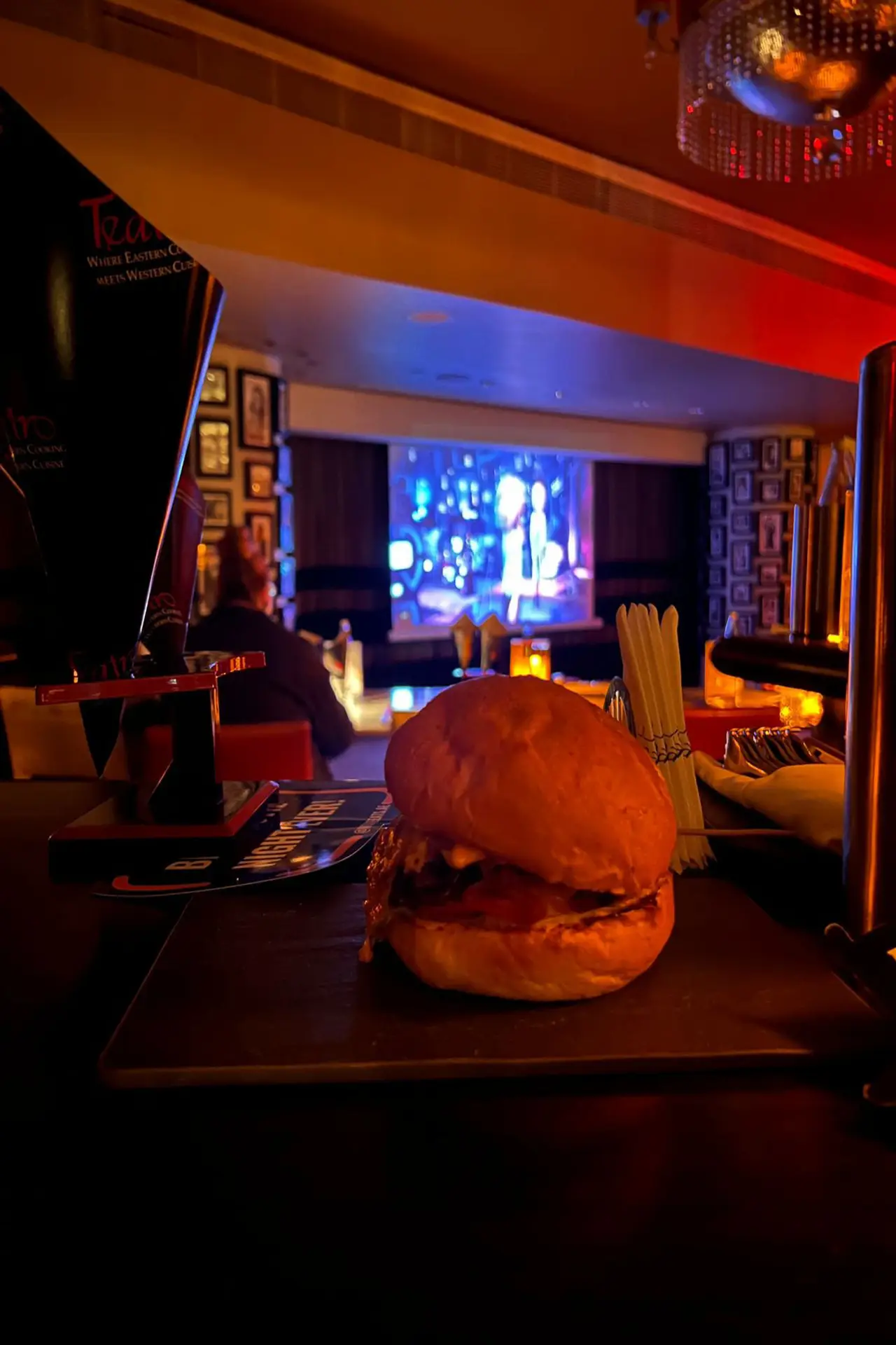 The front row seats are low dining tables, which are placed at the front of the restaurant giving an optimum view of the screen at just AED 30 extra. The standard seating is placed just behind the front row seating; these tables are high bar tables and chairs. Screen views are still optimum with this experience.